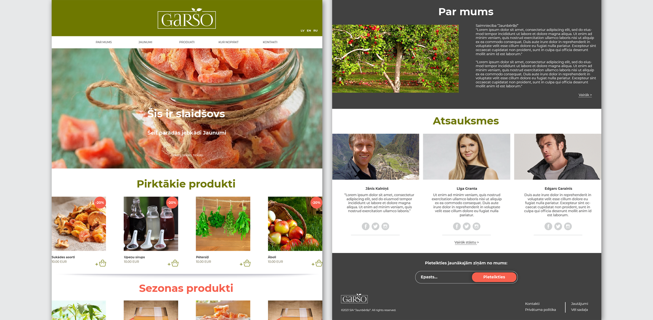 - Responsīvs dizains, kas pielāgojas lietotāja ierīcei (dotors, planšete, viedtālrunis u.c.), lai tādā veidā mājaslapa saglabātu savu optimālo lietojamību un izskatu neatkarīgi no ierīces, kurā tā tiek rādīta.